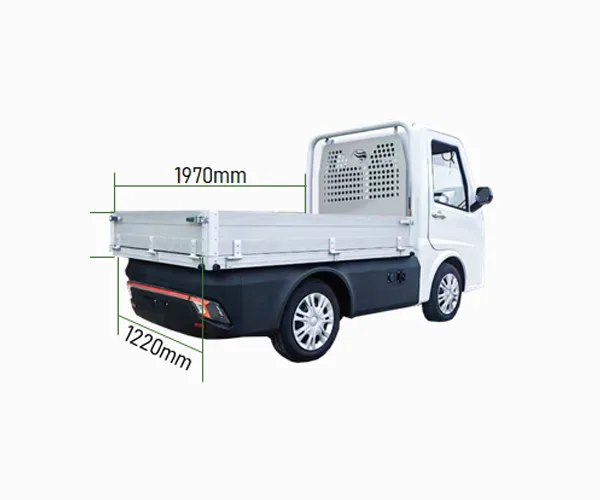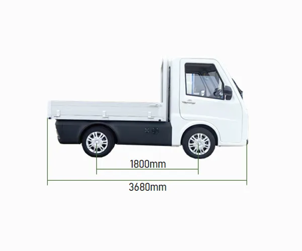 ENERGOOSZCZĘDNY, ekologiczny, w pełni elektryczny mini samochód ciężarowy, WYDAJNA MOC; natychmiastowy moment obrotowy z silników elektrycznych; szybkie przyspieszenie, MINIMALNY HAŁAS; płynna jazda, WYSOKA ELASTYCZNOŚĆ; wszechstronny/wielofunkcyjny – duży 12-calowy wyświetlacz, niski lub zerowy podatek drogowy, ładowanie w domu (220 Volt; gniazdko domowe) lub na stacji ładowania samochodu (6,5-10 godz.), dozwolone na WSZYSTKICH TYPACH DRÓG, system hamowania ABS i układ kierowniczy EPS (płynny), mały promień skrętu, trójwarstwowe malowanie, przestronna kabina, kamera cofania, elektryczne lusterko wsteczne, cyfrowe lusterko wsteczne, elektryczne szyby, system odzyskiwania energii z hamulców, skrzynia ładunkowa (platforma): aluminium, lekka/wytrzymała, odporna na korozję, ładowność: 650 kg, prędkość 80 km/h, zasięg 170/200 km/20,6 kWh akumulator (opcjonalnie: akumulator 27,2 kWH –> 200/250 km), 2 OSOBY